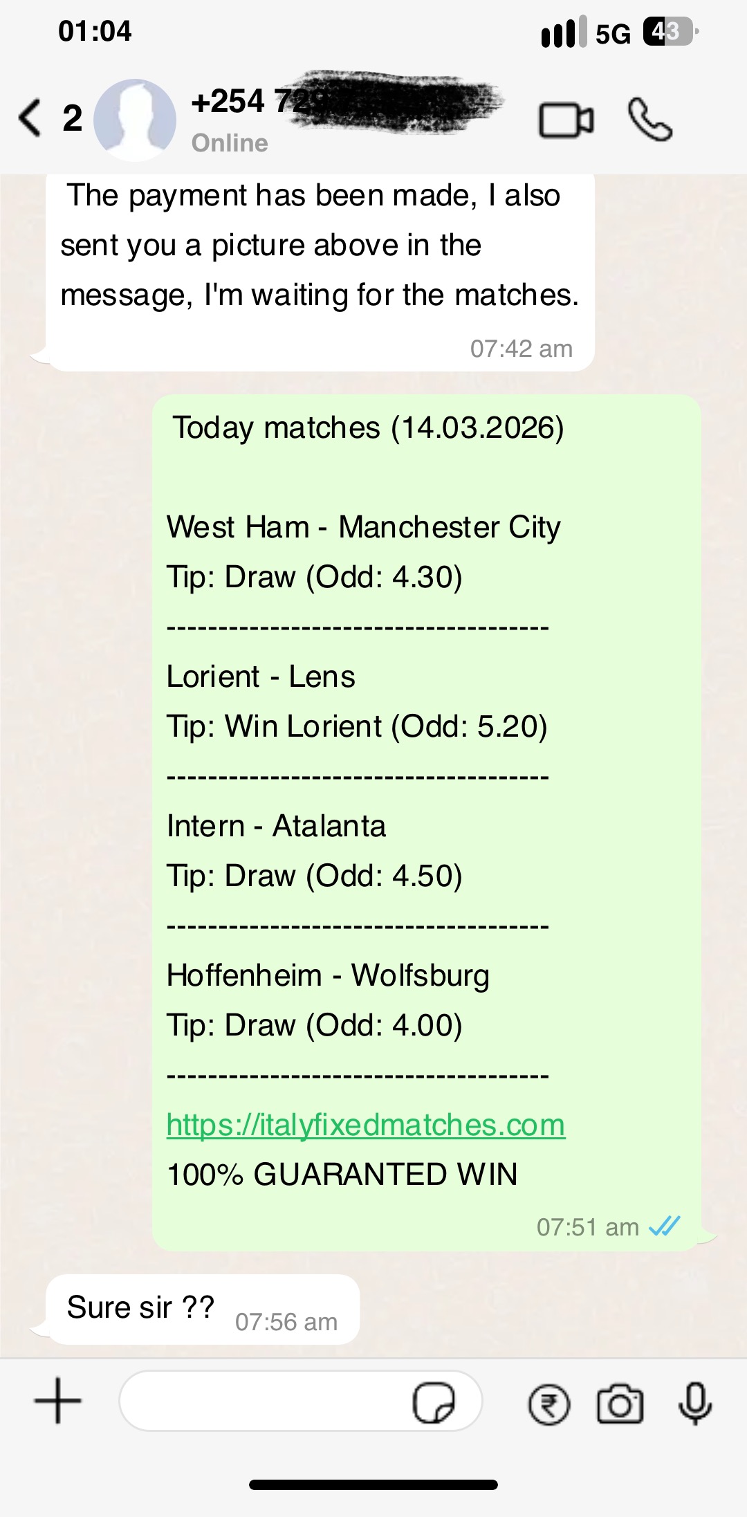 FREE MATCH FOR TODAY (07.04.2026)