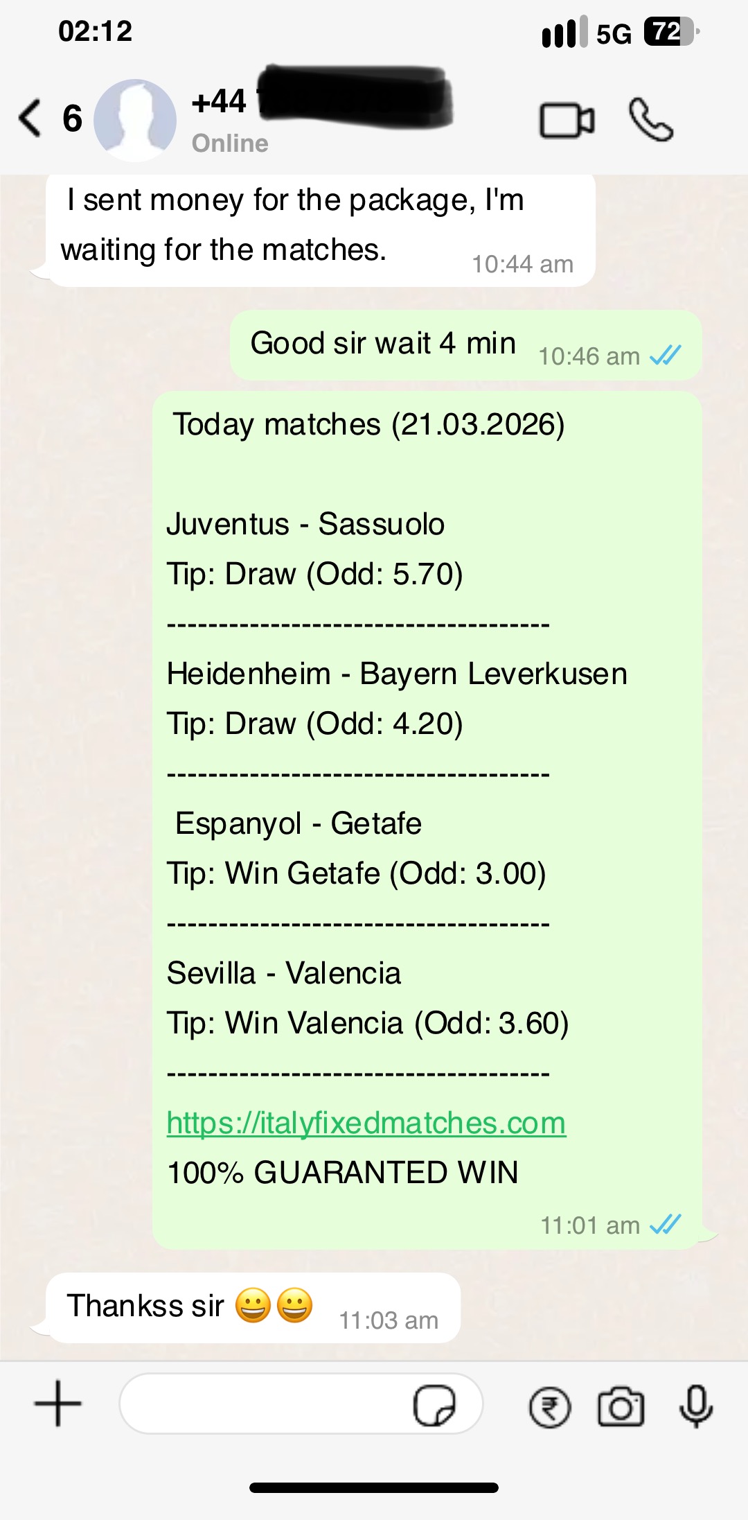 FREE MATCH FOR TODAY (25.03.2026)