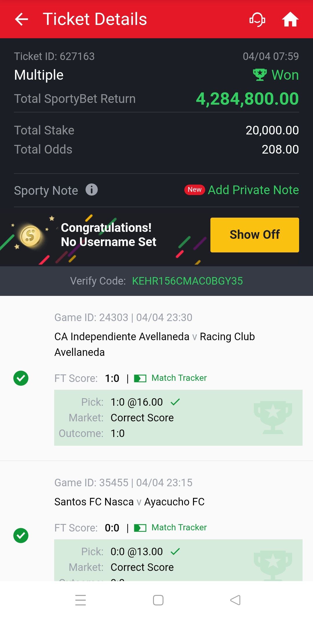 RESULT: 2:2 WINN