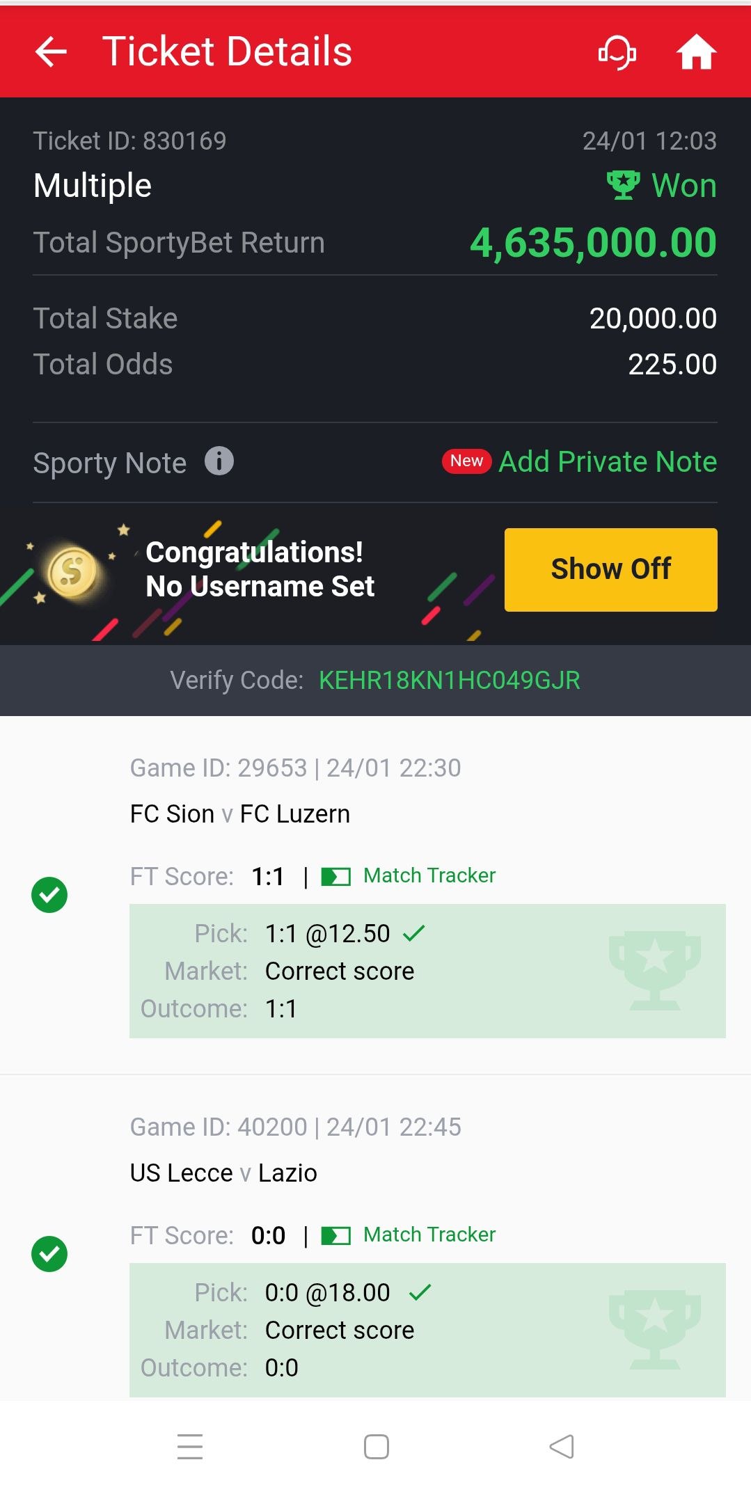 TOTAL ODDS: 117.00 WIN