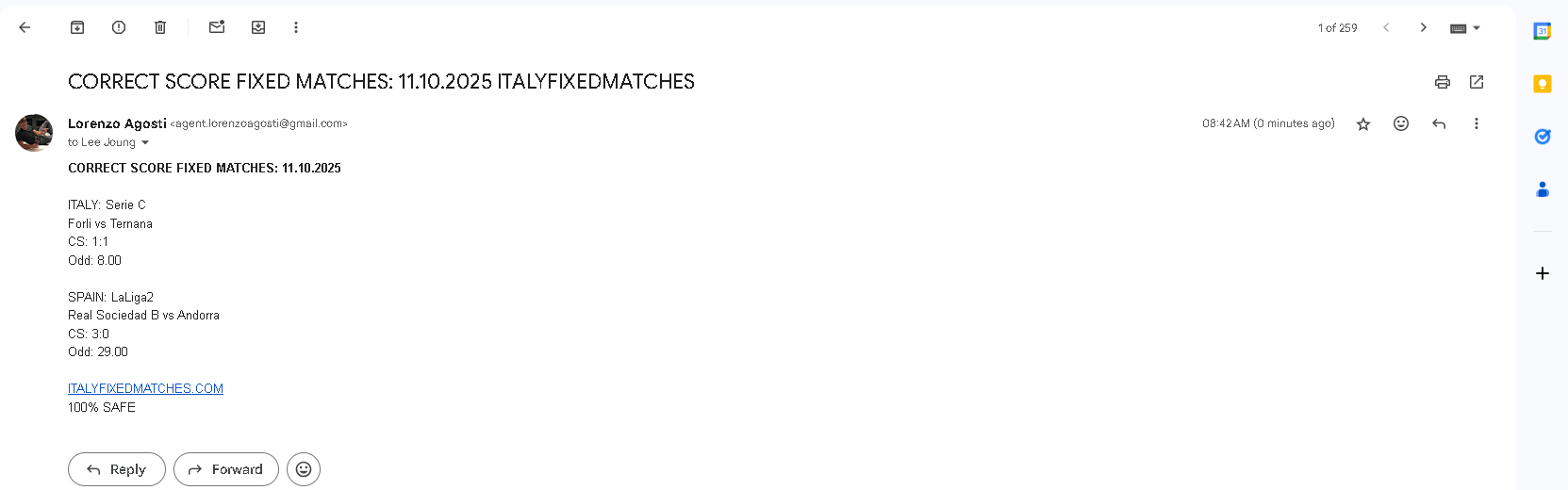 11.10.2025 | Forli – Ternana | 1:1 | 8.00 | 1-1 |