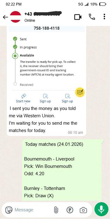 | 24.01.2026 | Burnley – Tottenham | X | 3.40 | 2-2 |