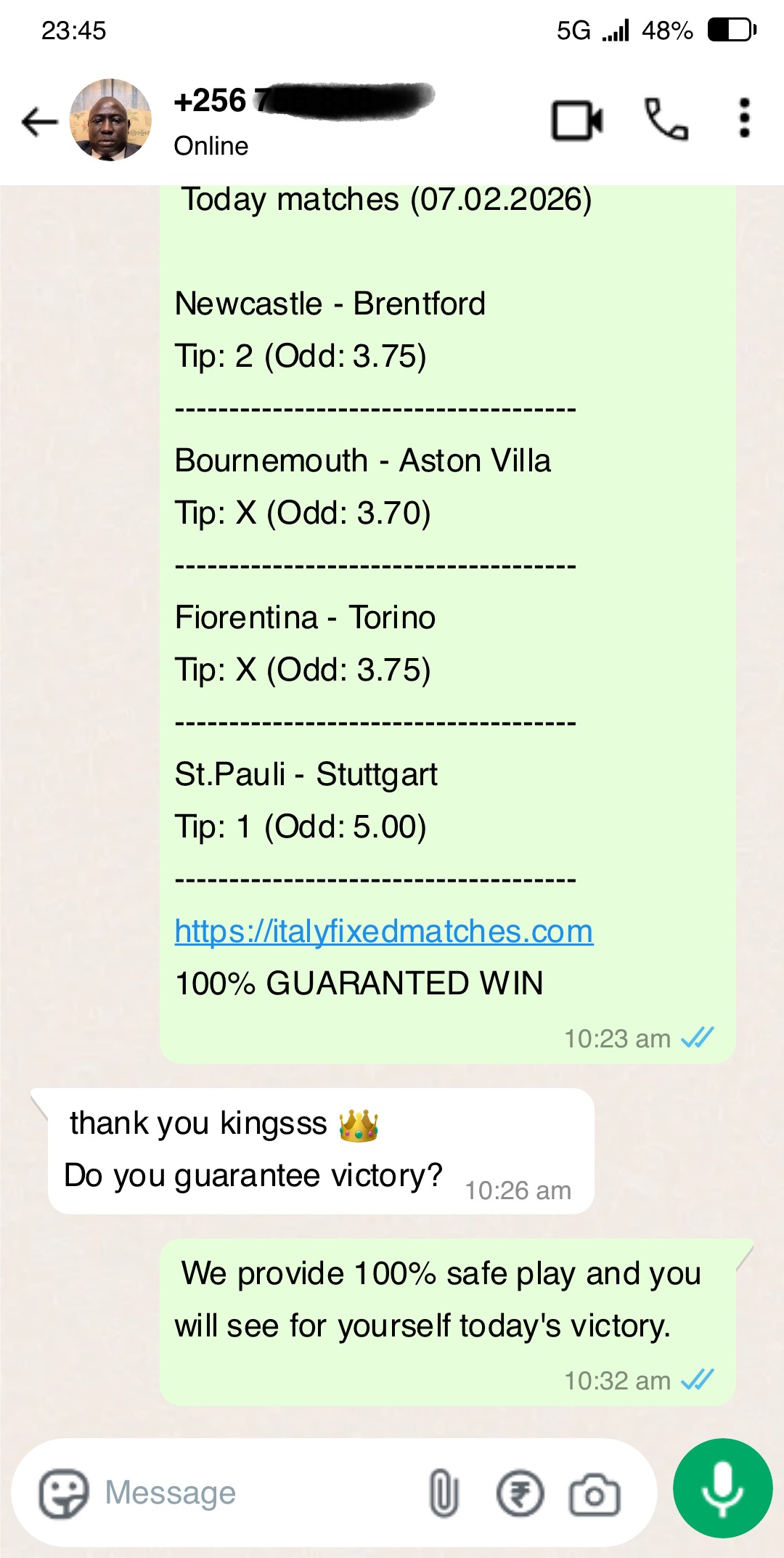 Buy our 100% Sure Fixed Matches and BET secure with no risk of lost !